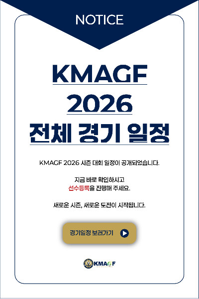 KMAGF NEWS KMAGF의 새로운 소식을 확인하세요. 더보기 2025년도 한국미드아마추어골프연맹 아마랭킹 TOP10 2025-10-29 LX 제16회 KMAGF 미드아마 챔피언십 우승 황준영(남성선수권부), 서효석(시니어선수권부) 2025-10-29 KMAGF NOTICE KMAGF의 공지사항을 확인하세요. 더보기 2023년 골프 규칙에 대한 추가 설명 (2026년 1월 업데이트) 2026-01-14 제2회 아티타야배 레이디스 미드아마 챔피언십 & LX 제16회 KMAGF 미드아마 챔피언십 갤러리 허용에 관한 안내 2025-10-16