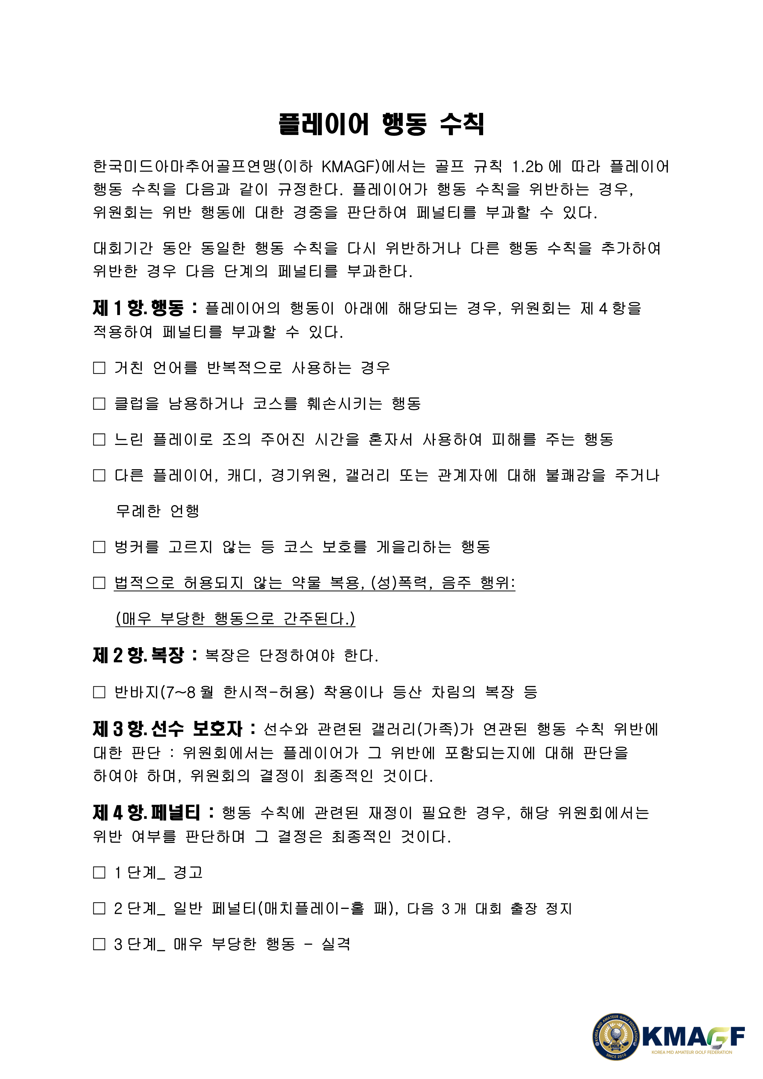 2026년 플레이어 행동 수칙