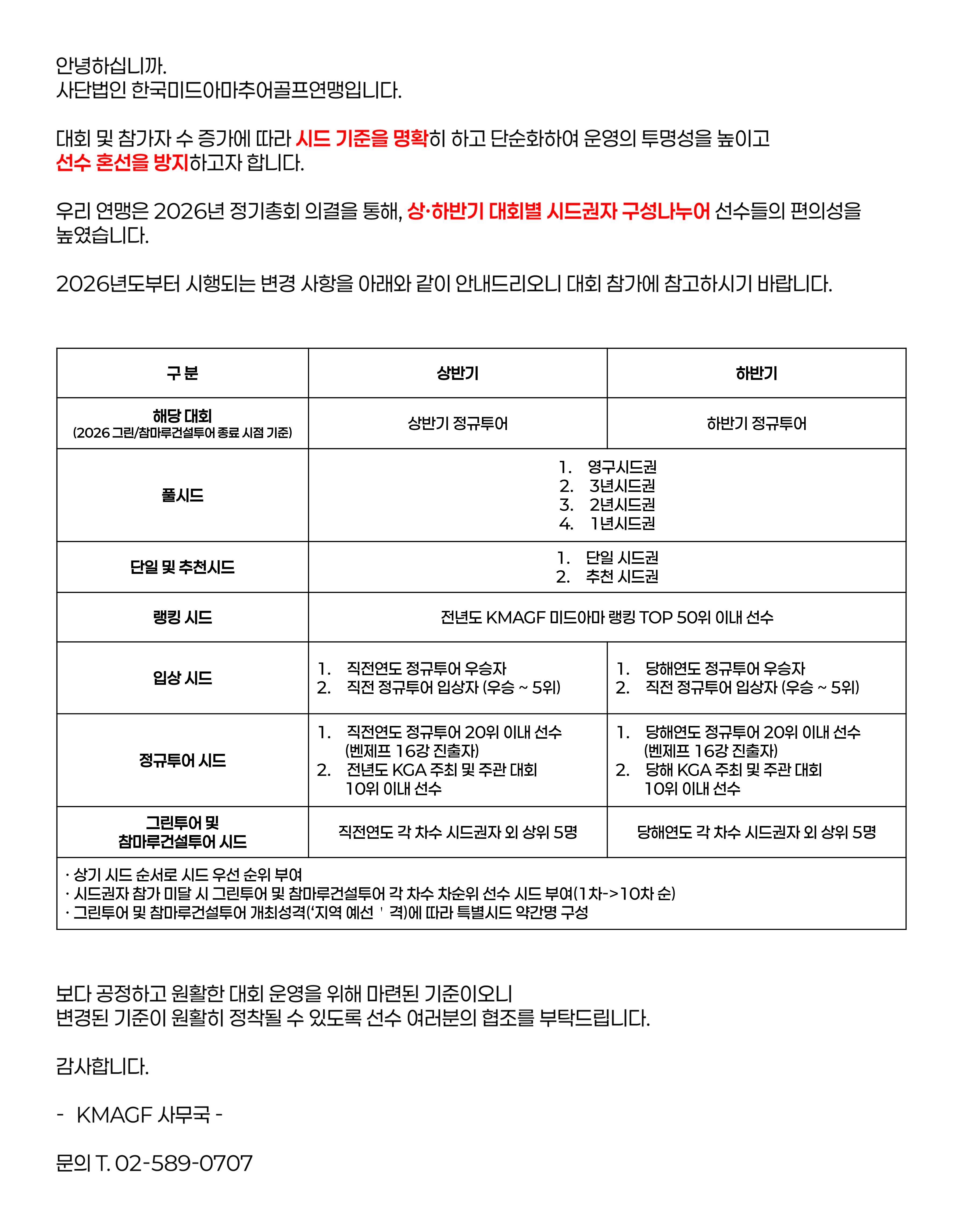 KMAGF 2026 정규투어 시드권자 구성 안내