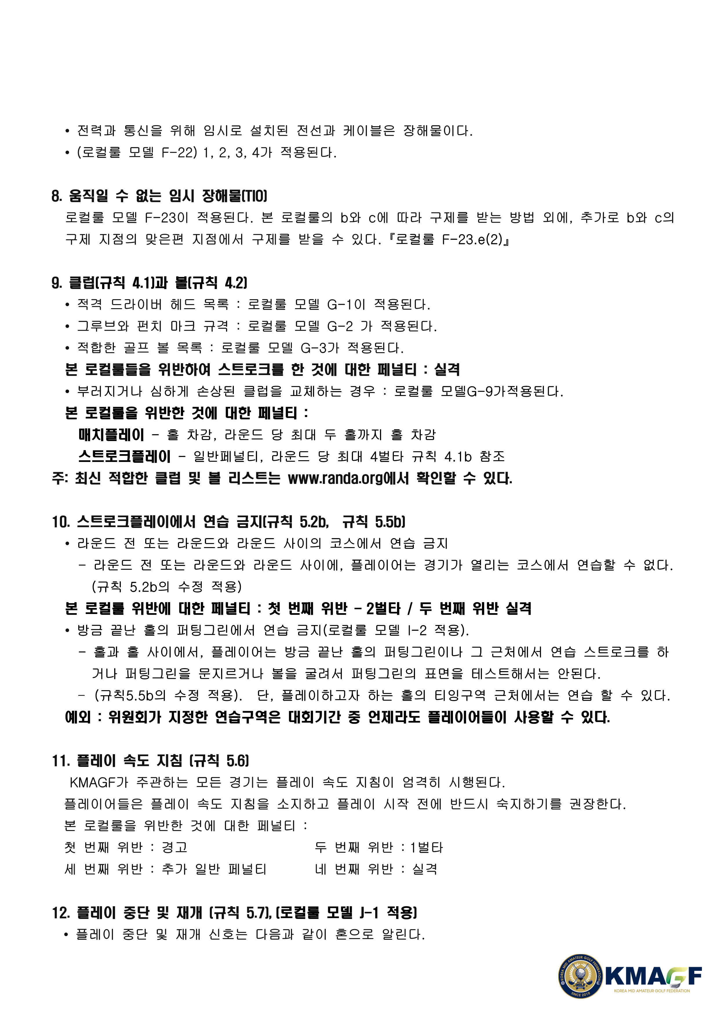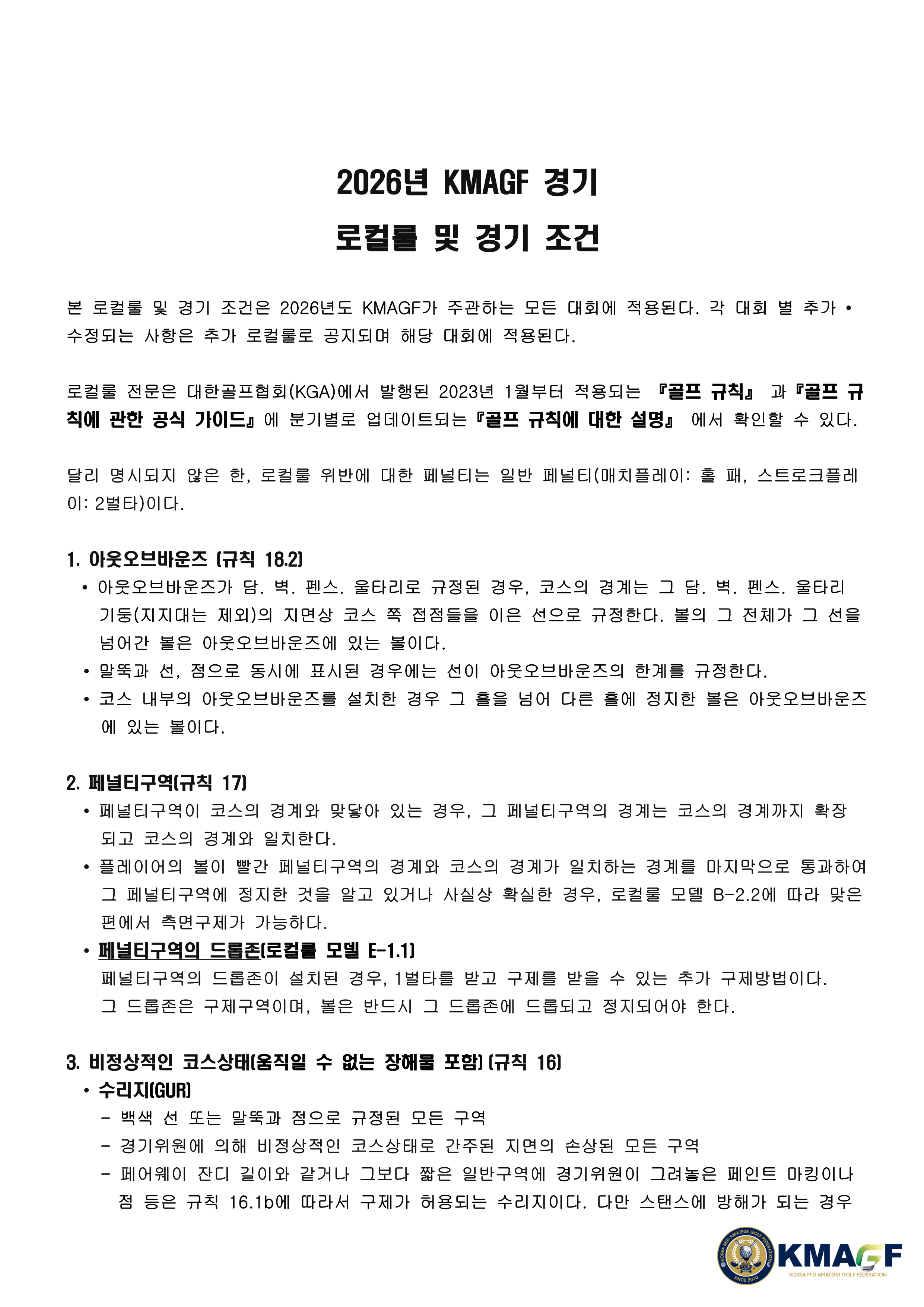 2026년 KMAGF 대회 로컬룰 및 경기 조건 안내