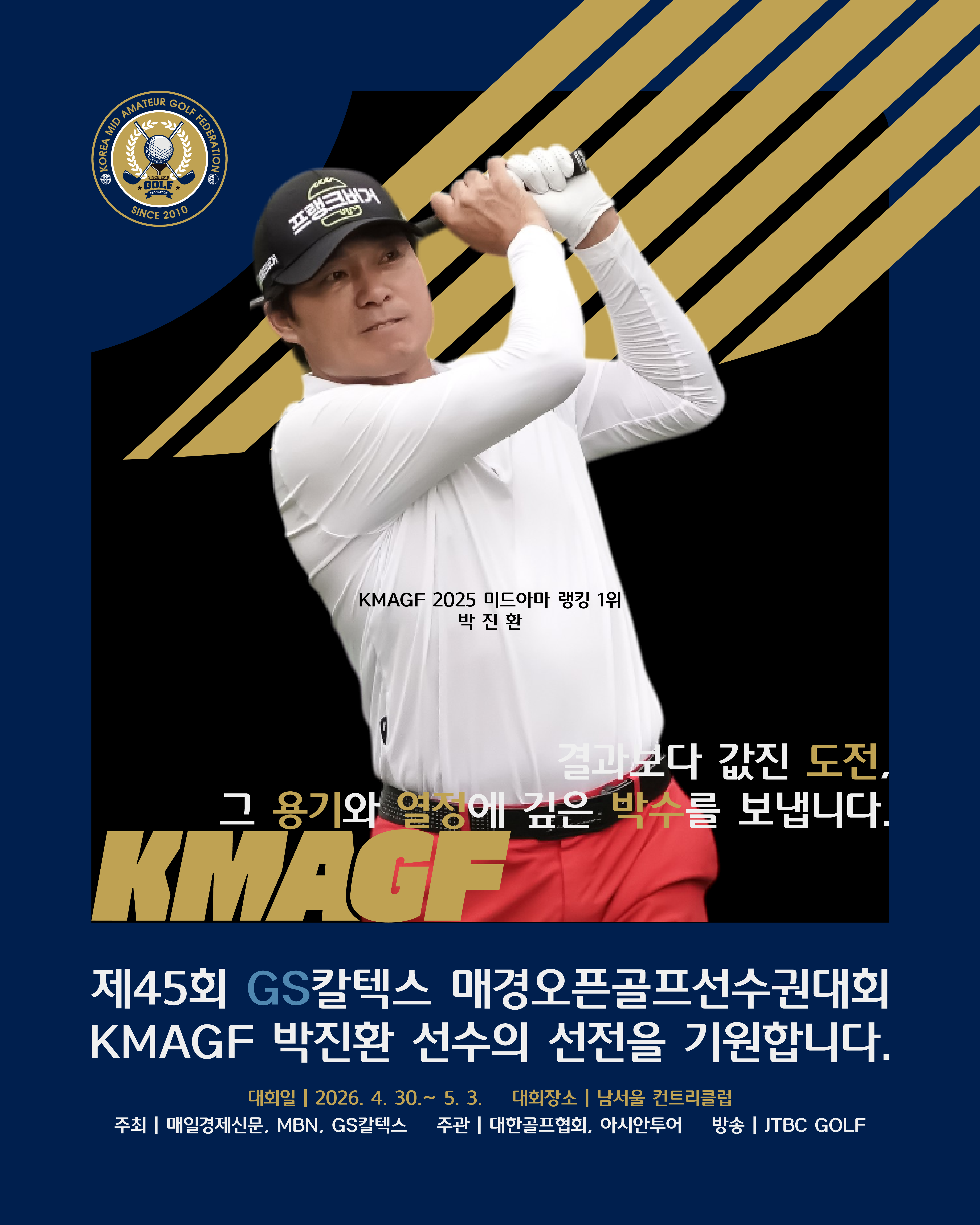 KMAGF 2025 미드아마랭킹 1위 '박 진 환' 선수가 프로 최강자들과 나란히 우승컵을 향한 샷을 날립니다.