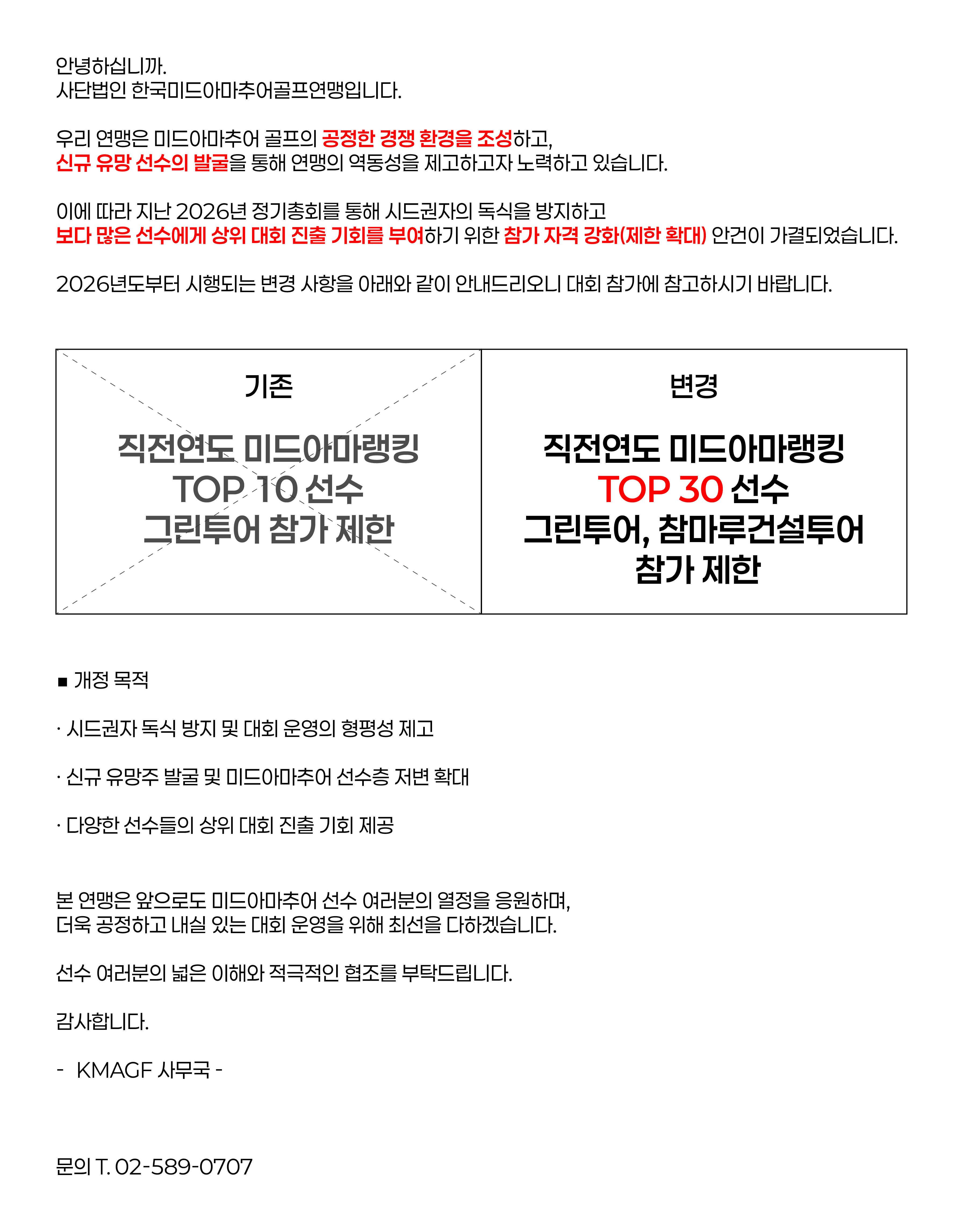 KMAGF 그린투어, 참마루건설투어 참가자 제한 확대 안내