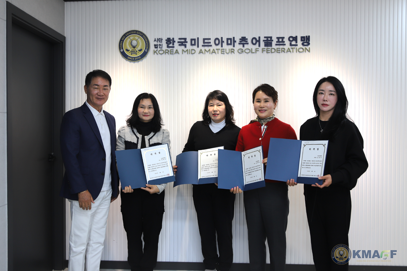 - 일자 : 2026년 4월 1일 수요일- 참석자 : 정환 회장, 장흥수 수석부회장, 강권오 전무이사김선미 여성 위원장, 김경희, 박성숙, 차승희 (이하 여성 위원)2026년도 KMAGF 새 시즌을 맞이하여, 여성 미드아마추어 골프 발전 및 저변 확대를 위한 KMAGF 여성위원회 간담회가 진행되었다.이날 간담회에서는 2026년 여성위원회 위촉장 수여식과 함께 여성 미드아마추어 대회의 방향성과 활성화에 대한 심도 깊은 논의가 이어졌다.